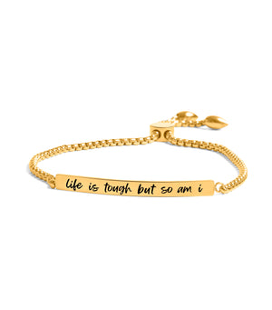 Life is Tough Gold Bar Drawstring Bracelet