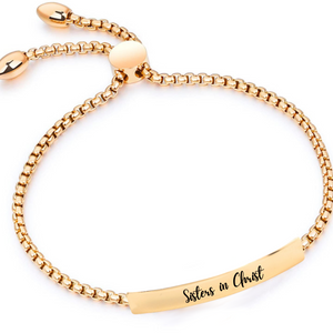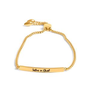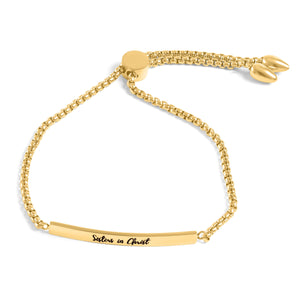 Sisters in Christ Gold Bar Drawstring Bracelet